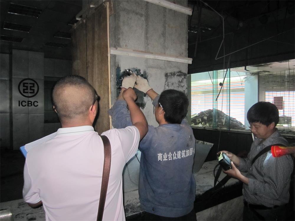 四川省檢測中心技術(shù)工程師對加固后施工質(zhì)量進(jìn)行安全拉拔檢測