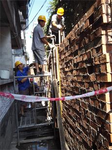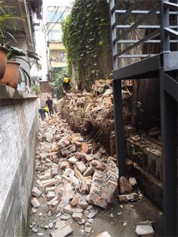 因4.20蘆山地震造成工行彭州支行辦公樓圍墻傾斜(原圍墻因年代已久也存在老化壯態(tài)),造成支行住宿樓與辦公樓安全隱患,危急過(guò)往行人生命危險。因此我供應商進(jìn)行該圍墻拆除及重新按施工規范進(jìn)行砌筑原貌恢復達到安全狀態(tài)并增加安全防護設施,其施工內容包括:  1、傾斜圍墻拆除(包含圍墻基礎);2、圍墻重新砌筑;3、圍墻墻體水泥砂漿雙面抹灰;4、磚墻連接砼構造柱及砼連系梁澆筑工程(含螺紋鋼筋制作安裝);5、墻腳地基增設混凝土及零星混凝土修補;6、圍墻頂面鋪設鋼刺網(wǎng)(其中包含刀刺和刺絲);7、鋼刺網(wǎng)支撐連接角鋼支座(包括支座焊接預埋)8、拆除后建筑垃圾清運(含零星垃圾);