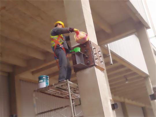 沃爾沃汽車(chē)成都工廠(chǎng)新建SWE及培訓室項目局部柱粘鋼、植筋加固改造項目,施工內容為一層局部框柱化學(xué)植錨栓及鋼圍套加 固,其軸線(xiàn)范圍為:(1)、G~H段/25軸(砼框架柱);(2)、G~H段/26軸~27軸(砼框架柱);(3)、G~H段/27軸~28 軸(砼框架柱);(4)、以上在該區域范圍內共有7根框架柱四周截面進(jìn)行鉆孔植筋及粘鋼 附以下現場(chǎng)施工記錄照片