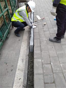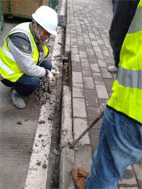 拆除原有破損、斷裂的路沿石