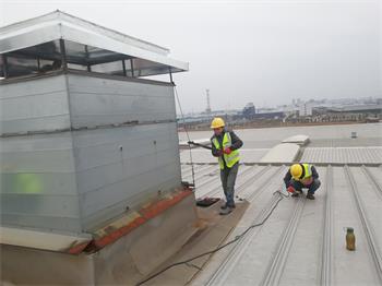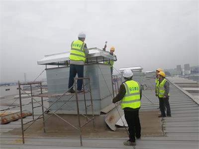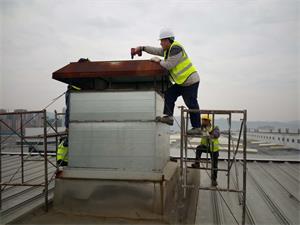 維修更換硬換路沿石 2.3、總裝焊裝風(fēng)管風(fēng)帽拆除與更換施工照片