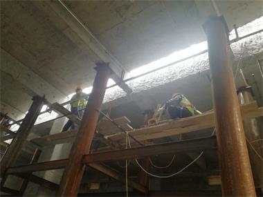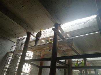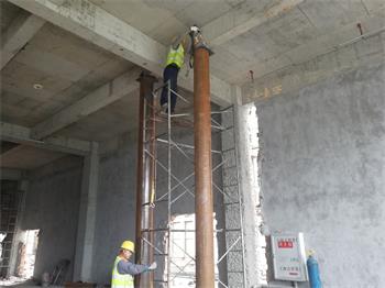 經(jīng)過(guò)一個(gè)半月緊張有效的施工,又完成由四川省建筑科學(xué)研究院設計的中鐵建大橋工程局集團第五工程有限公司新辦公大樓多功能廳拔柱加固改造項目,施工內容工序繁多大而堅險,涉及多工種交叉作業(yè)特種施工技術(shù),有鋼筒頂升托換支撐、承重柱靜力切割、拆除、梁柱加大加粗截面、預應力拉錨加固等施工內容,并通過(guò)成都建工質(zhì)量檢驗中心進(jìn)行施工質(zhì)量鑒定,獲甲方與監理及總包施工一到致好評。 附以下施工記錄照片: