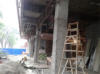 工行網(wǎng)點(diǎn)裝修單位在施工過(guò)程中發(fā)現辦公樓底框架柱、板有局部鋼筋銹色,砼松脫現場(chǎng),委托我加固單位到現場(chǎng)進(jìn)行結構檢查,經(jīng)查看后,該樓結構初步分析整體結構屬于安全狀態(tài),僅局部砼柱面層缺陷采用碳纖維進(jìn)行補強均符合一般安全要求。